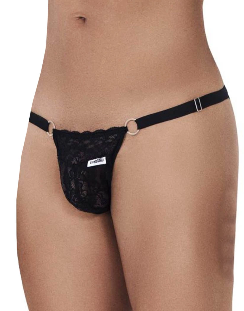 The Candyman Peekaboo Lace Bikini is a sexy and unique style. This bikini is made of lace fabric with ring details on either side. Its low-rise waist is held in place by a thin, elastic ribbon waistband. The minimal coverage rear has a stunning and daring back cut out. You’ll never find another pair quite like this.