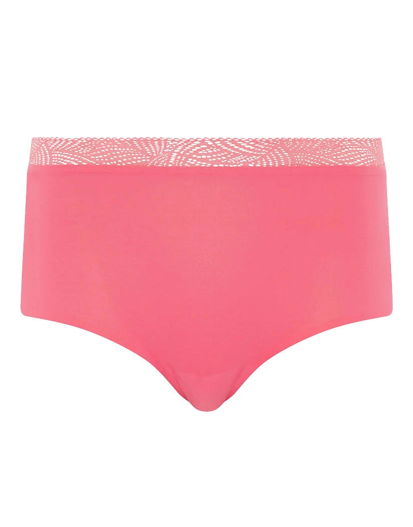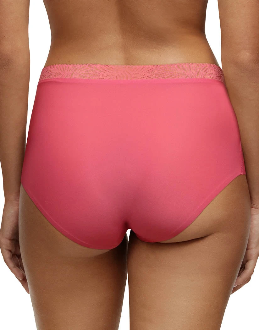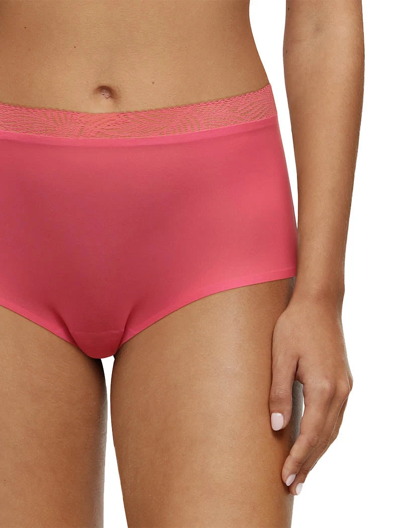 The Chantelle Soft Stretch One Size Brief With Lace is simplistic and sexy. This brief style panty is made of a smooth fabric that stretches to fit your body. You’ll get a curve-hugging, supportive fit that moves with you. The brief has a high-rise waistband with a wide lace strip sitting above it. Its full coverage rear provides all-day support. This brief is one size fits all and looks amazing and on a wide range of body types.
