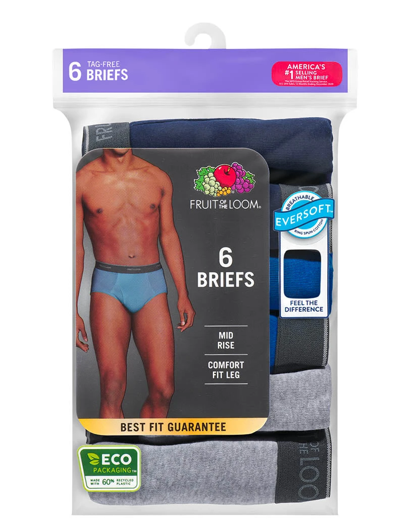 The Fruit of the Loom 6-Pack Asst Fashion Brief is a comfortable mid-rise underwear that will have you set for almost every day of the week. The breathable fabric will keep you cool and comfortable all day long. Shop these comfortable styles now!