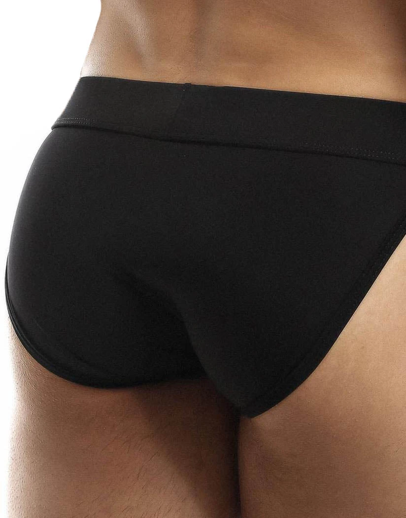 The Intymen Obscene Bikini is smooth and flattering. This bikini-style underwear is made of sleek fabric. Its open legs provide flexible movement and complete freedom. The low rise waist is held in place by a wide, incorporated fabric waistband. The moderate coverage rear shows off a little cheek, but keeps things comfortable and modest. You’ll love this simplistic, sexy design.Â