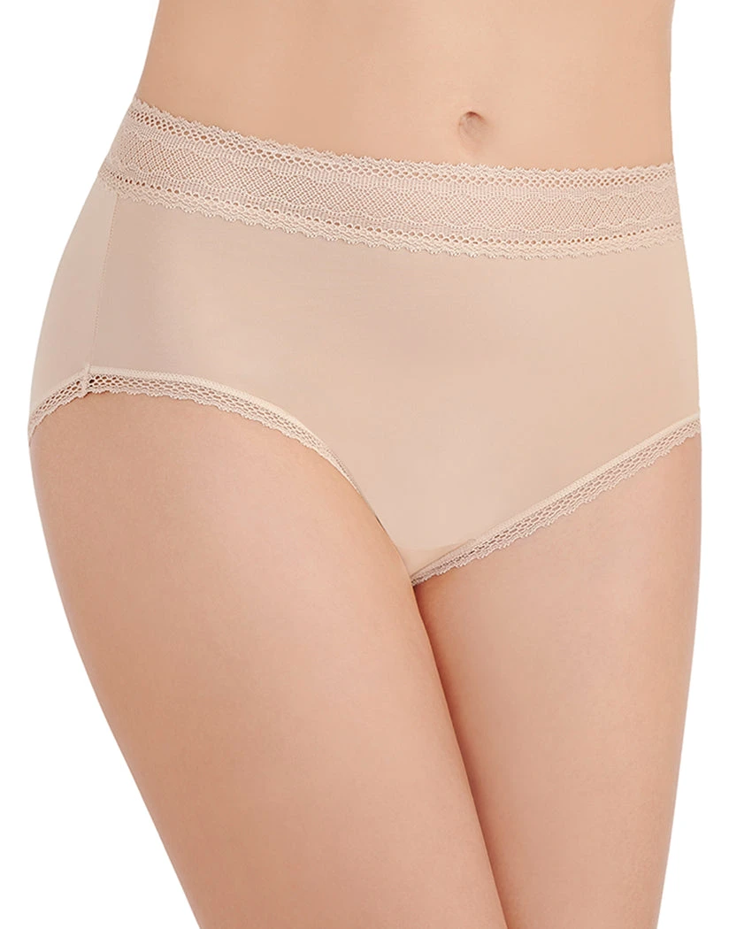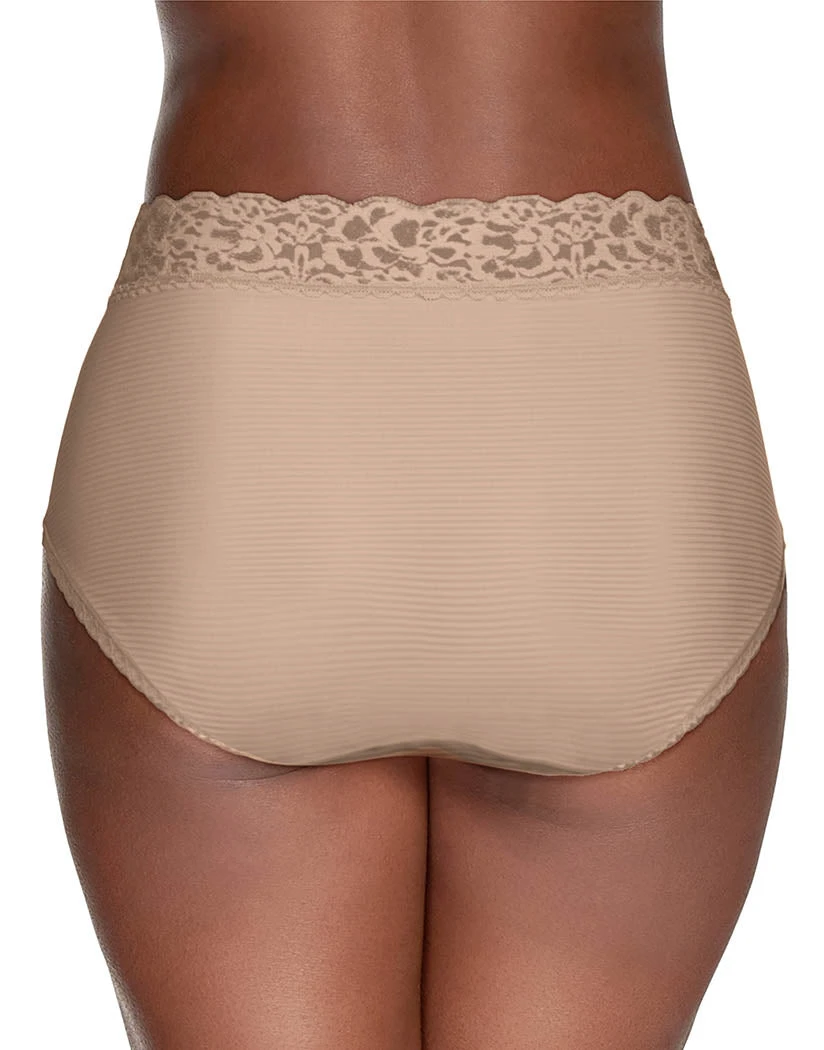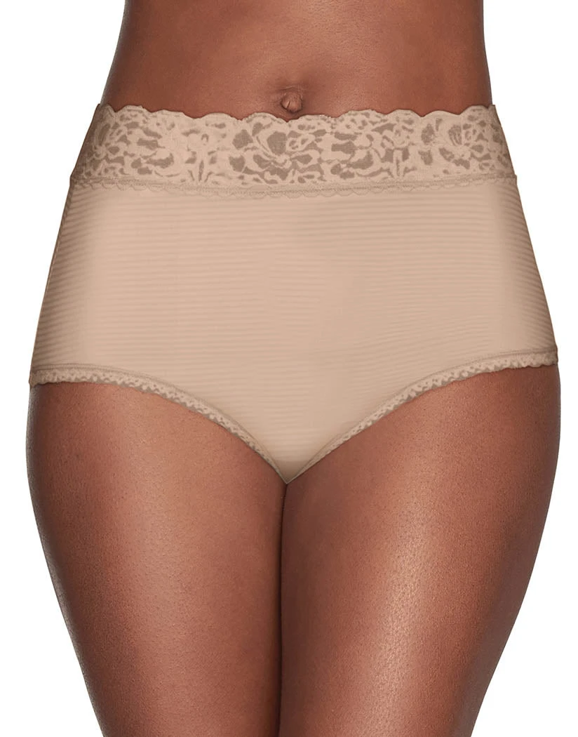 The Vanity Fair Flattering Lace Brief is made with ultra-soft fabric that features an amazing stretch that adjusts perfectly to your body for a customized fit. A beautiful lace waist and leg elastic provide a stylish touch while staying in place.
