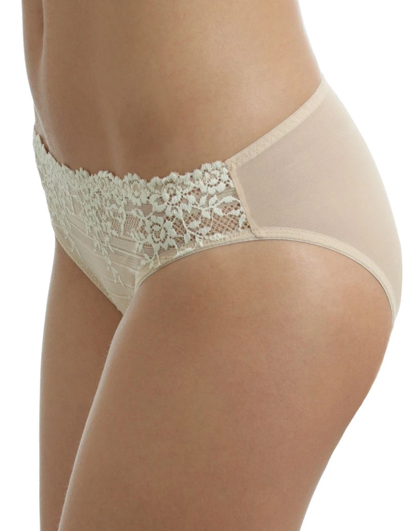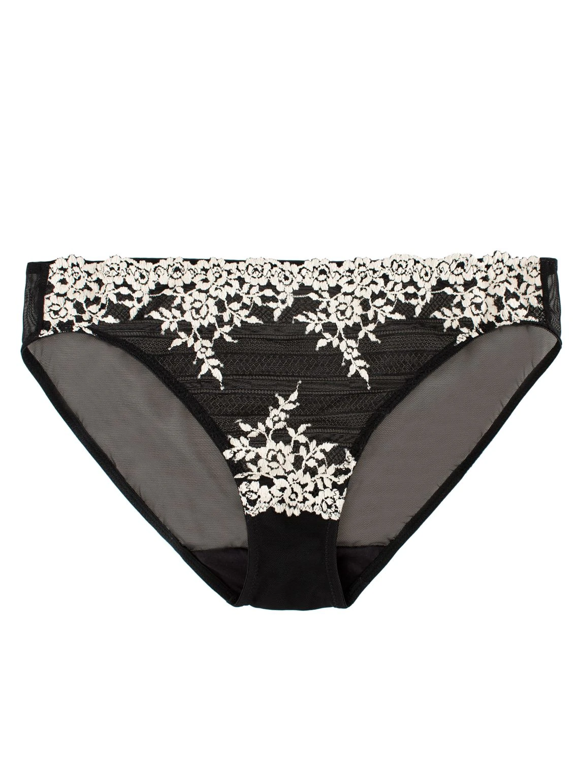 The Wacoal Embrace Lace Bikini is made from sheer mesh that feels soft and airy against your skin. To create a captivating effect, it’s embroidered with beautiful, floral lace throughout the front, with a scalloped edge waistband. This bikini provides full rear coverage, and has a sewn-in cotton crotch for comfort.